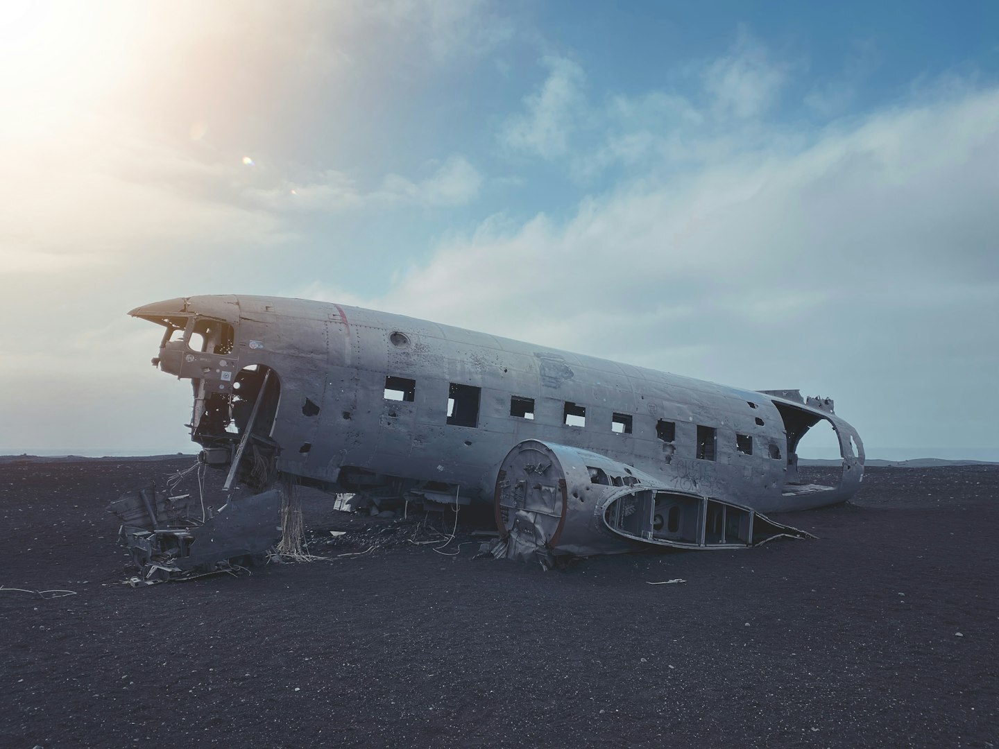 Sólheimasandur i wrak samolotu Dakota C- 117 - Wrak samolotu Dakota C-117 należy do najbardziej zagadkowych miejsc na Islandii, zlokalizowany na południu wyspy od 1973 roku na czarnej plaży Sólheimasandur. Do wraku samolotu prowadzi łagodny szlak, którego dystans w jedną stronę wynosi około 4 km. Alternatywą dla pieszej wycieczki jest busik, który podwozi turystów do celu, oczywiście nie za darmo.